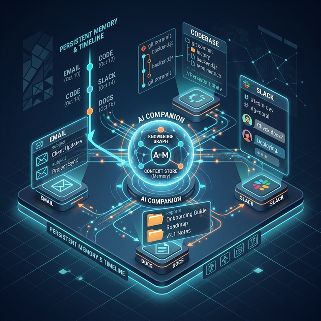 Engram enables AI companions that maintain a continuous, evolving understanding of your specific workspace over years, not just within a single chat session.