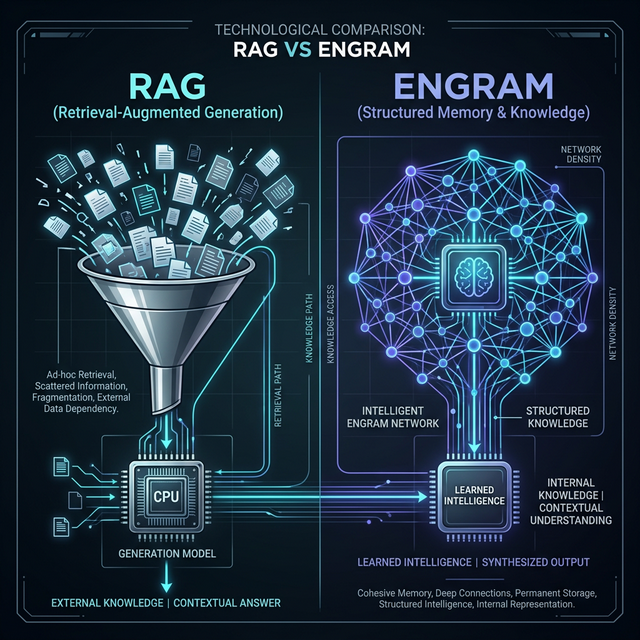 Think of it this way: RAG is like giving a student an open-book test where they have to frantically search an encyclopedia for the answer. Engram is like the student having actually studied and memorized the material the night before. The knowledge is native, instant, and synthesized.